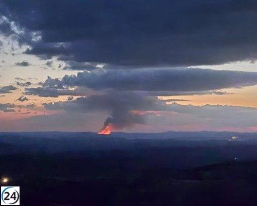 Veinte bomberos luchan contra incendio forestal en El Castillo de las Guardas, Sevilla.