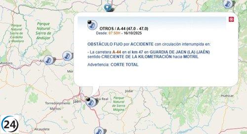 Cierra un carril de la A-44 en Campillo de Arenas (Jaén) por incendio de autobús, sin lesionados.